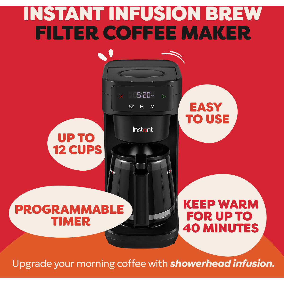 Instant Infusion Brew 12-Tassen Filterkaffeemaschine - Showerhead Pre-Infusion - 24-Stunden programmierbarer Timer - 1,8L herausnehmbarer Wassertank - Wiederverwendbarer Filter - Einfaches Touchscreen - Brühzeit 12 Tassen in 10 Min - Warmhalten 40 Min