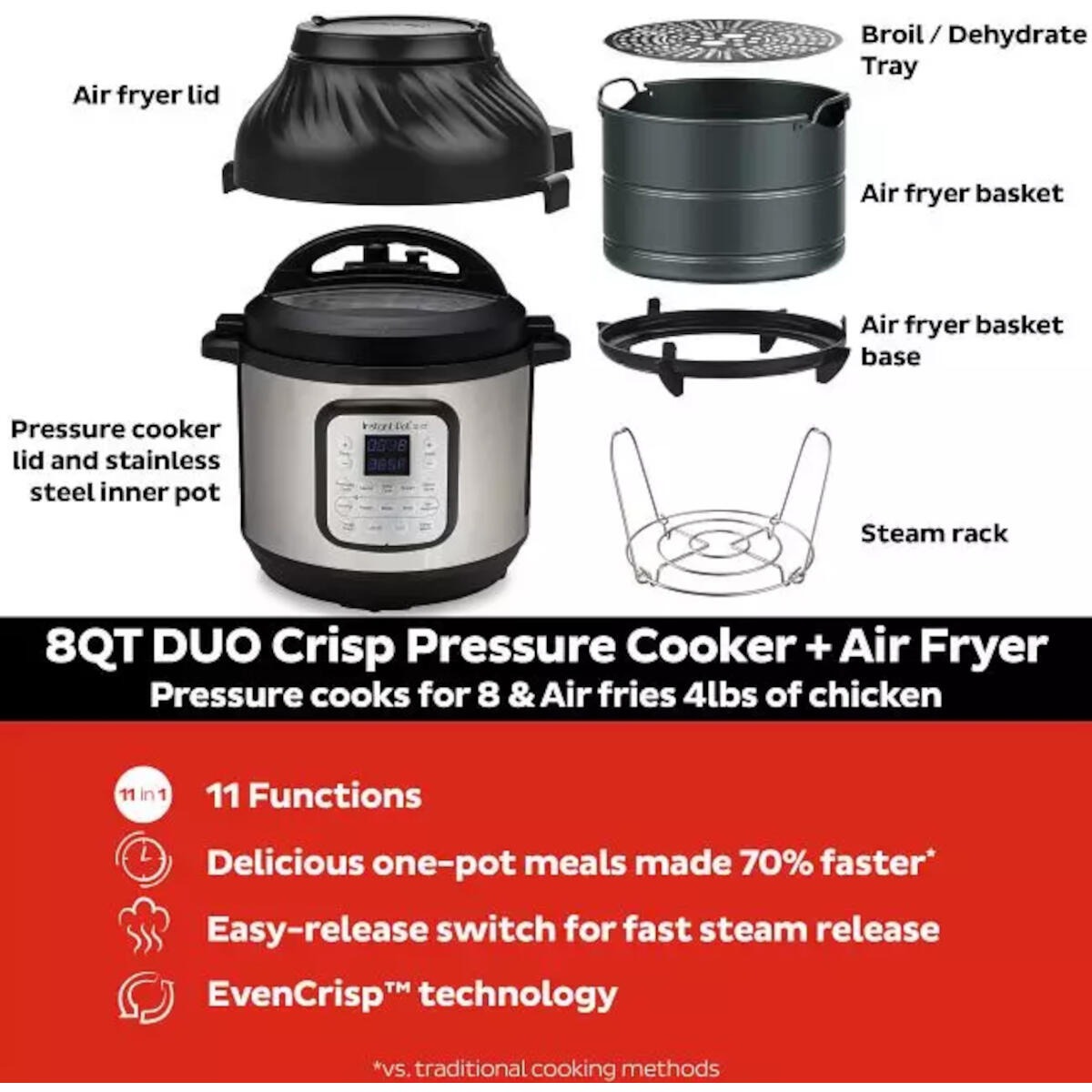 Instant Pot Duo Crisp 5,7 l Multikocher mit Airfryer, Innentopf aus Edelstahl, Schnellkochdeckel, Airfryer-Deckel, Dampfgarer mit Griffen, mehrschichtiger Airfryer-Korb, Drahtgitter/Dörrschale, Schutzmatte für heiße Deckel, Handbuch Englisch (Niederländis
