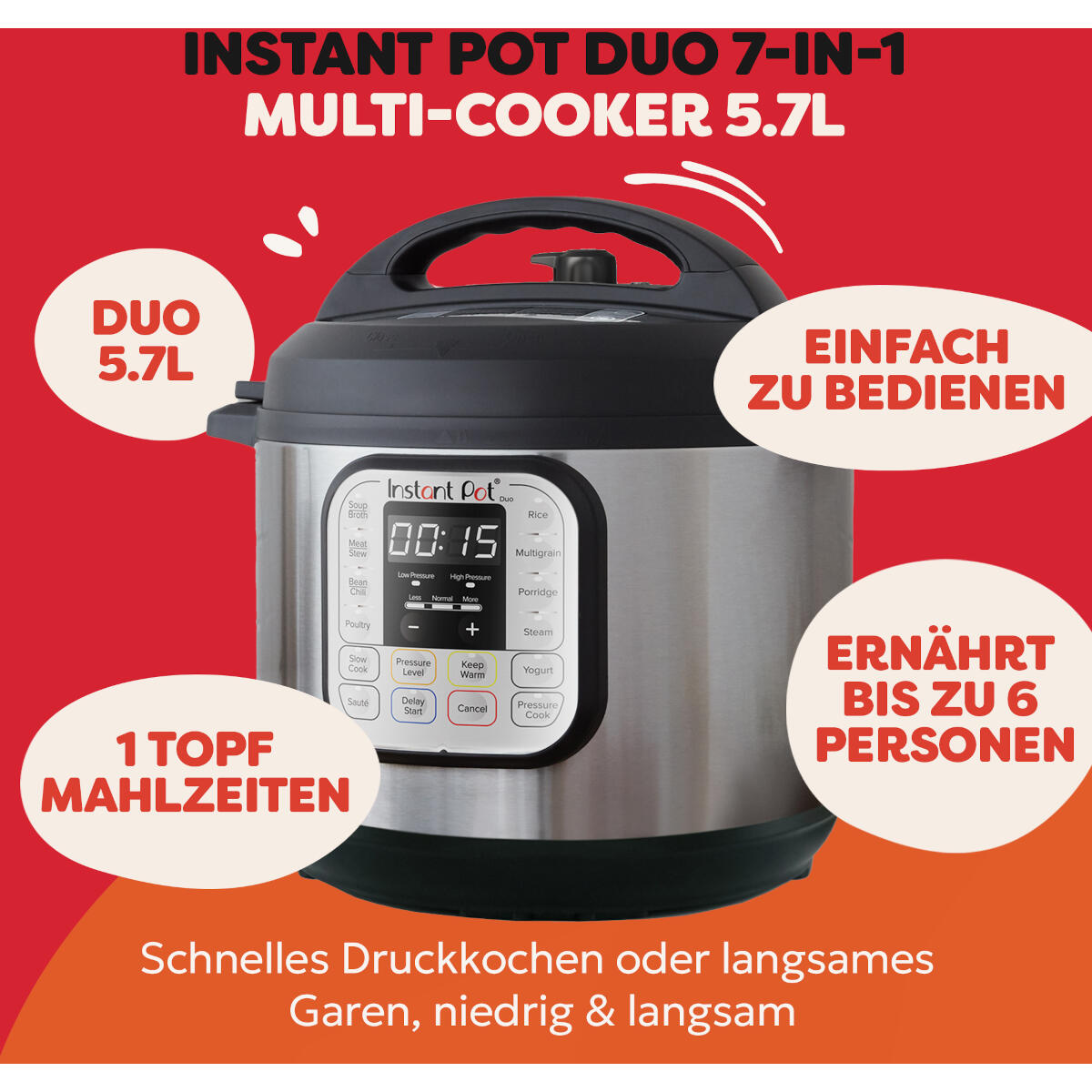 Der meistverkaufte Instant Pot® Duo â„¢ Multikocher ersetzt nicht nur 7 Geräte, sondern beschleunigt auch das Garen um das 2-6-fache und spart bis zu 70% der Energie, die bei herkömmlichen Kochmethoden verwendet wird.