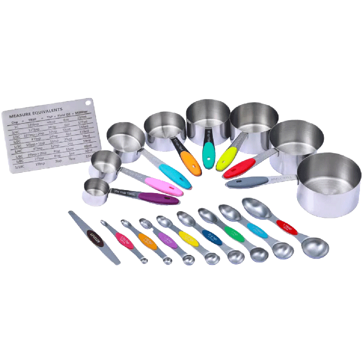 We have something handy for that. This super handy set consists of 18 measuring spoons and measuring cups with which you can scoop the right amount in one go that corresponds to those recipes. This way you always have the right amount of herbs, coffee or other (baking) ingredients and is a very handy tool for cooking and baking! Make American recipes great again! ????
