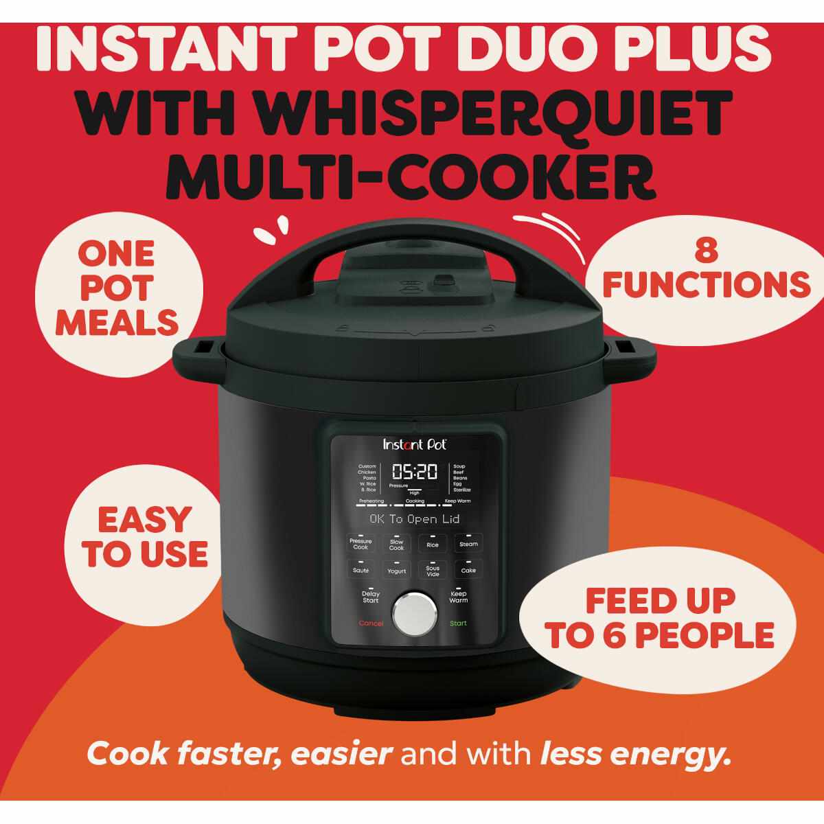- Simple, hands-free cooking: Choose a function, set the time, press start, and let the Instant Pot handle the rest, with notifications to let you know when your meal is ready.