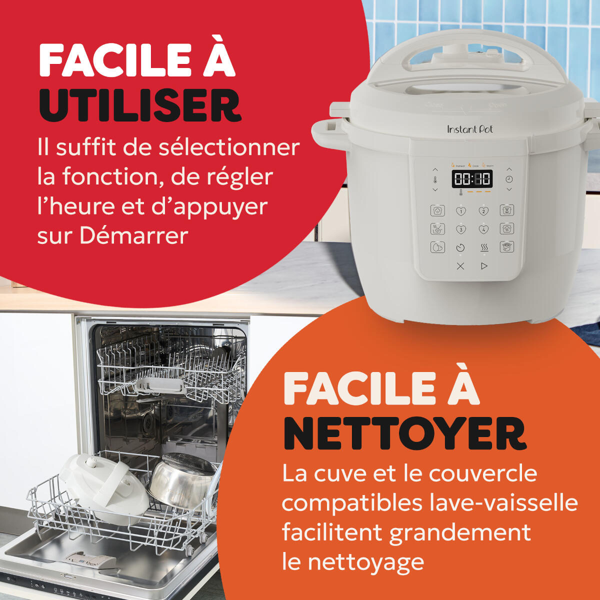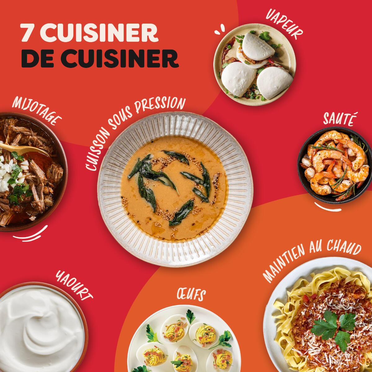 - Fonctionnalité 7-en-1 : cuisson sous pression, mijotage, sauté, vapeur, yaourt, œufs et maintien au chaud; tout en un seul appareil.