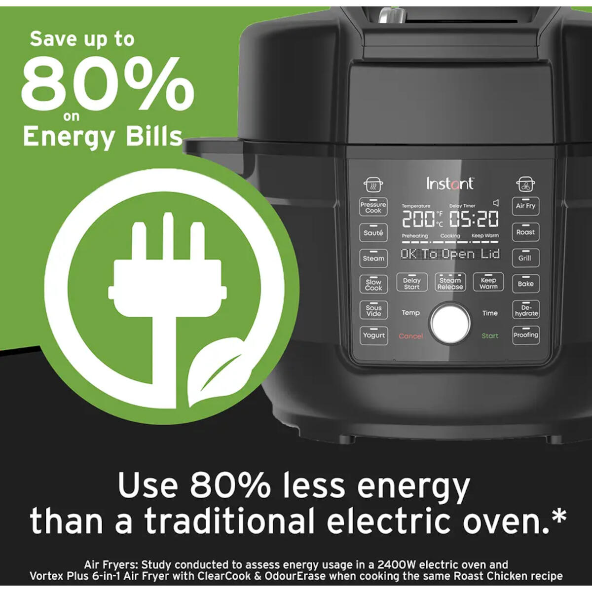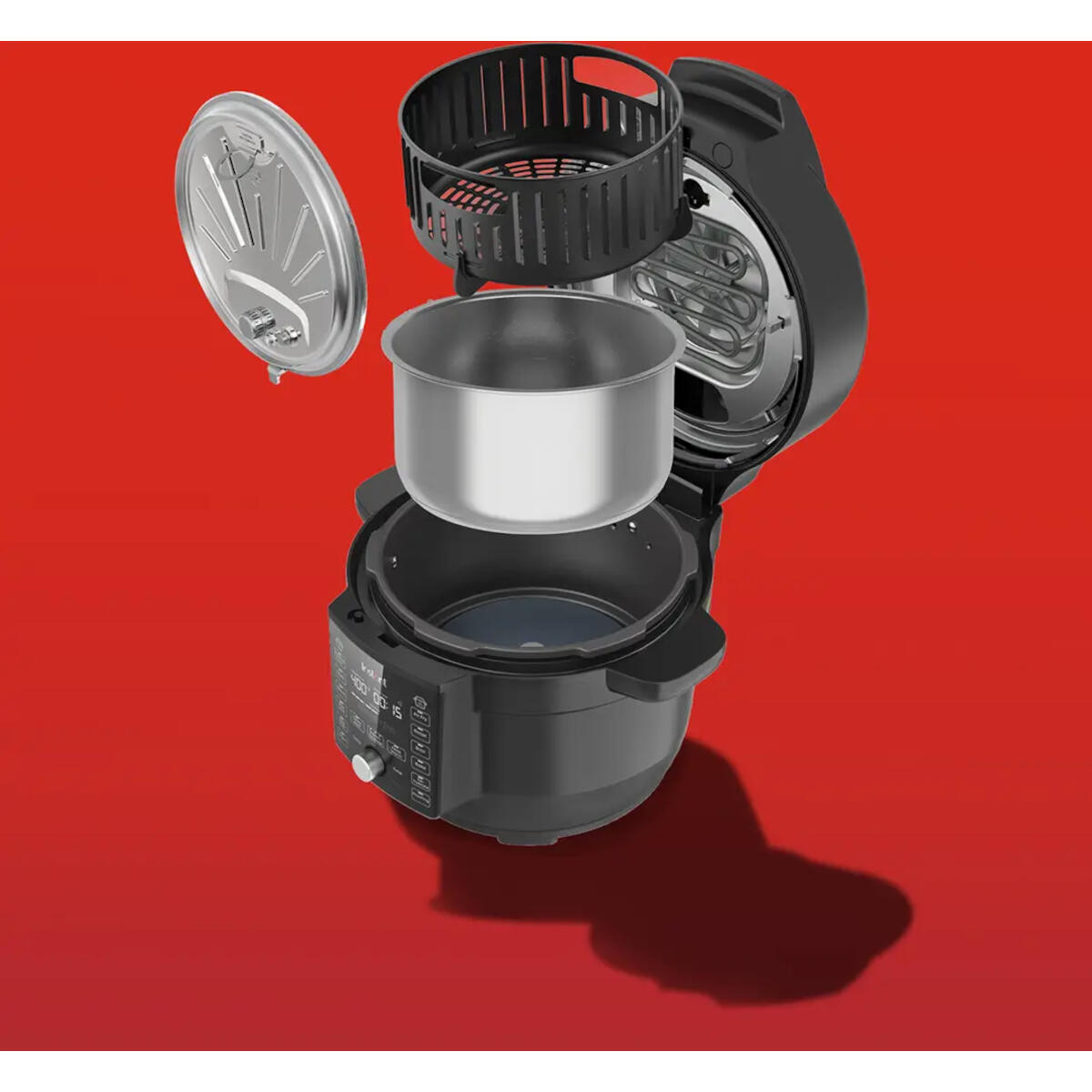 - 13 en 1 : fonctionne comme autocuiseur, friteuse à air, mijoteuse, cuiseur vapeur, sauteuse, chauffe-plats, cocotte, mini-four, gril, déshydrateur, yaourtière, cuiseur sous vide et lève-pain.