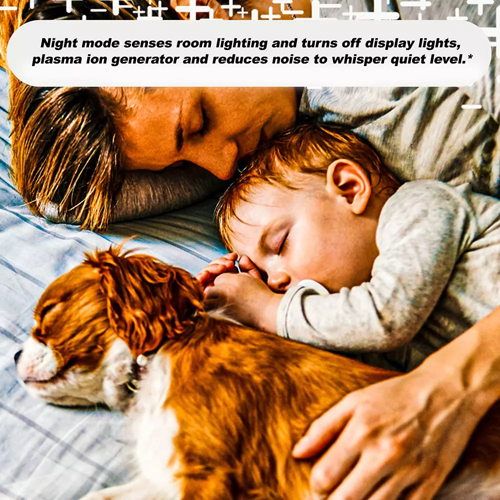 - Geavanceerd filtratiesysteem: HEPA-13 filter vangt 99,97% van stof, huidschilfers, pollen, allergenen en andere ultrafijne onzuiverheden in de lucht; koolstoflaag in het filter helpt geurtjes te verminderen; antimicrobiële coating voorkomt bacteriegroei op het filter en beschermt het tegen afbraak