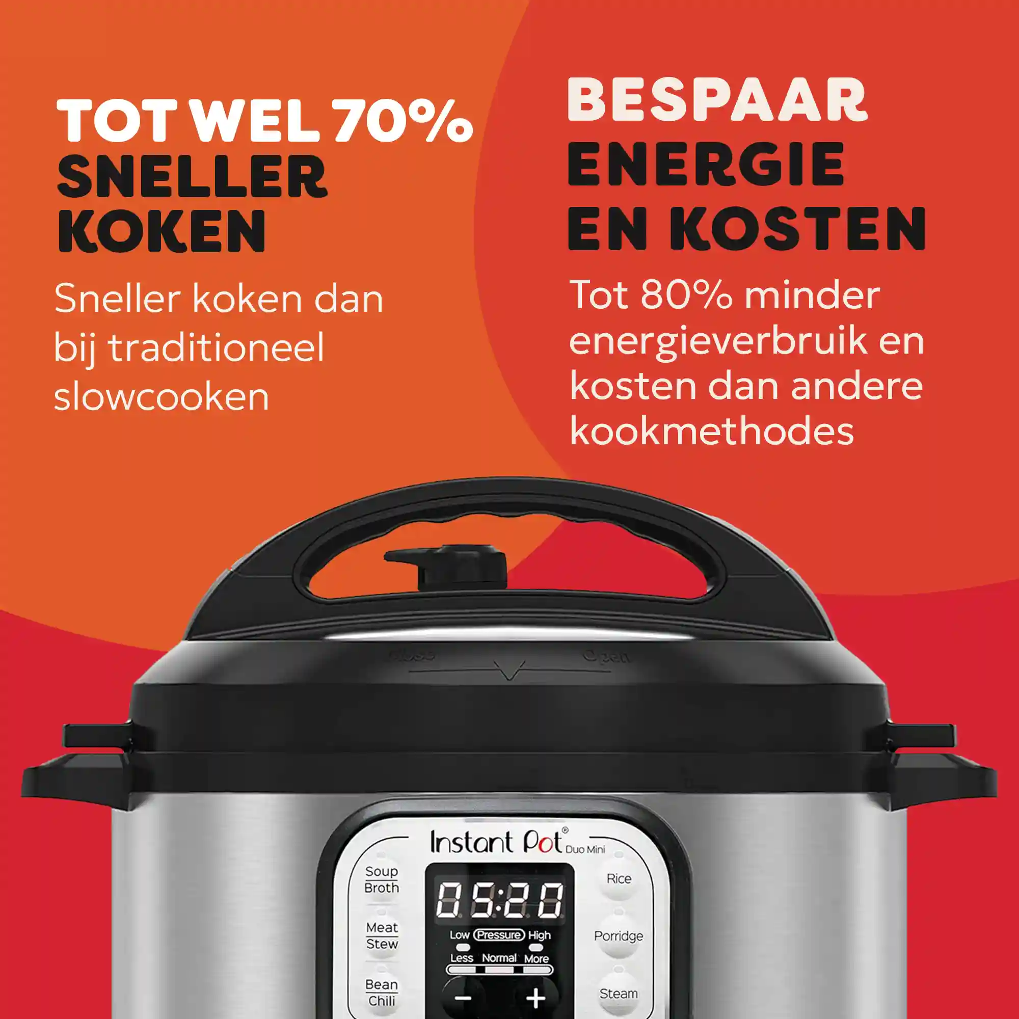 De #1 bestseller Instant Pot® Duo ™ multikoker vervangt niet alleen 7 apparaten, maar versnelt ook het koken met 2-6 keer en bespaart tot 70% van de energie die wordt gebruikt bij traditionele kookmethodes. Wordt geleverd met geschikte stekker voor heel Europa.