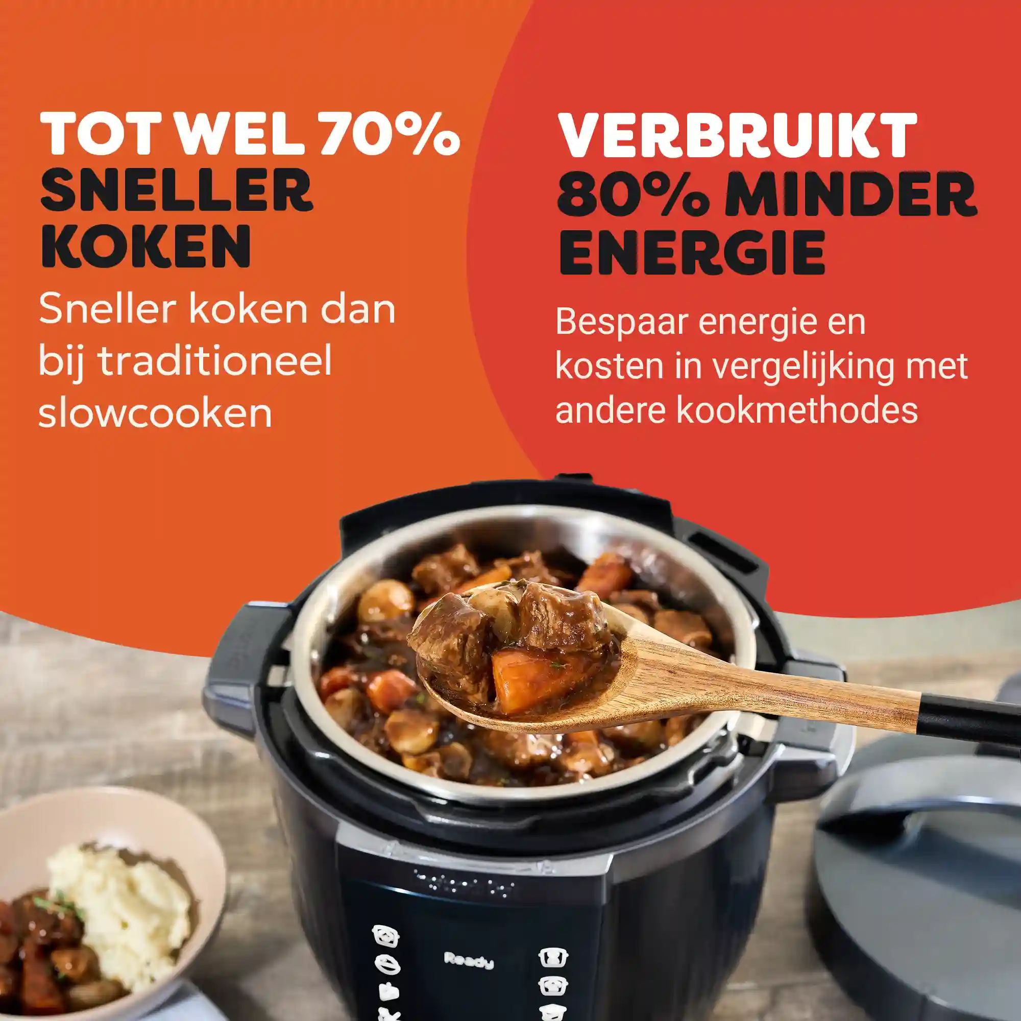 Slimme wifi-bediening: Het Instant Pot Pro wifi-model biedt draadloze connectiviteit via de Instant Brands Connect-app. Je kunt kookprogramma's op afstand starten, controleren en aanpassen, de timer beheren en zelfs de stoomafgifte activeren – allemaal vanaf je smartphone. De app biedt ook toegang tot honderden recepten met instructies voor extra gemak.