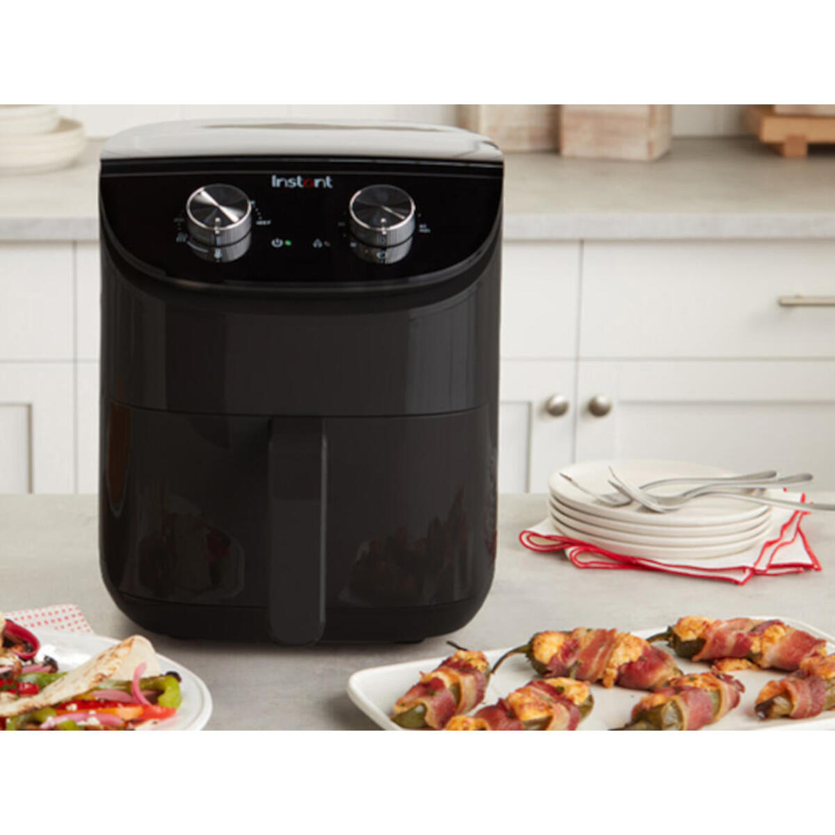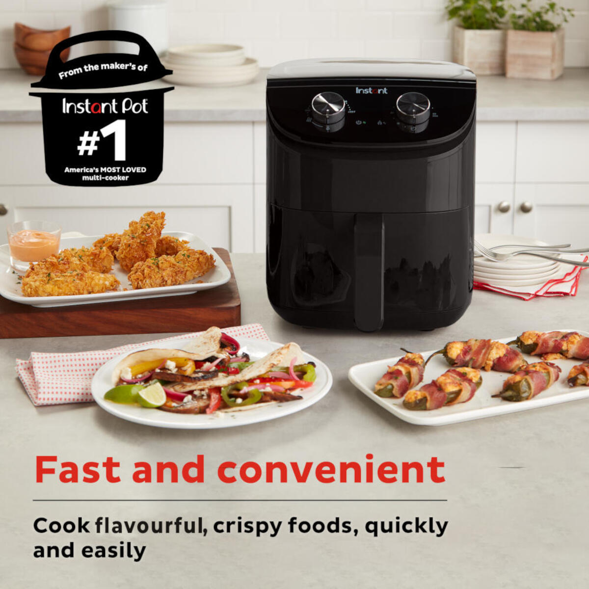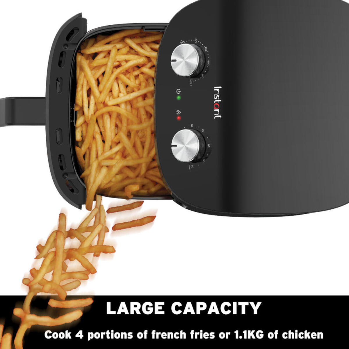 Ervaar het toppunt van gezond koken met de Instant Airfryer Zwart. Deze geavanceerde 3,8 liter airfryer combineert moeiteloos gebruiksgemak, kracht en gezondheid in een gestroomlijnd apparaat. Met minimale olie maakt deze airfryer het mogelijk om gezondere versies van je favoriete gefrituurde gerechten te bereiden, dankzij de innovatieve Even Crisp-luchtstroomtechnologie.