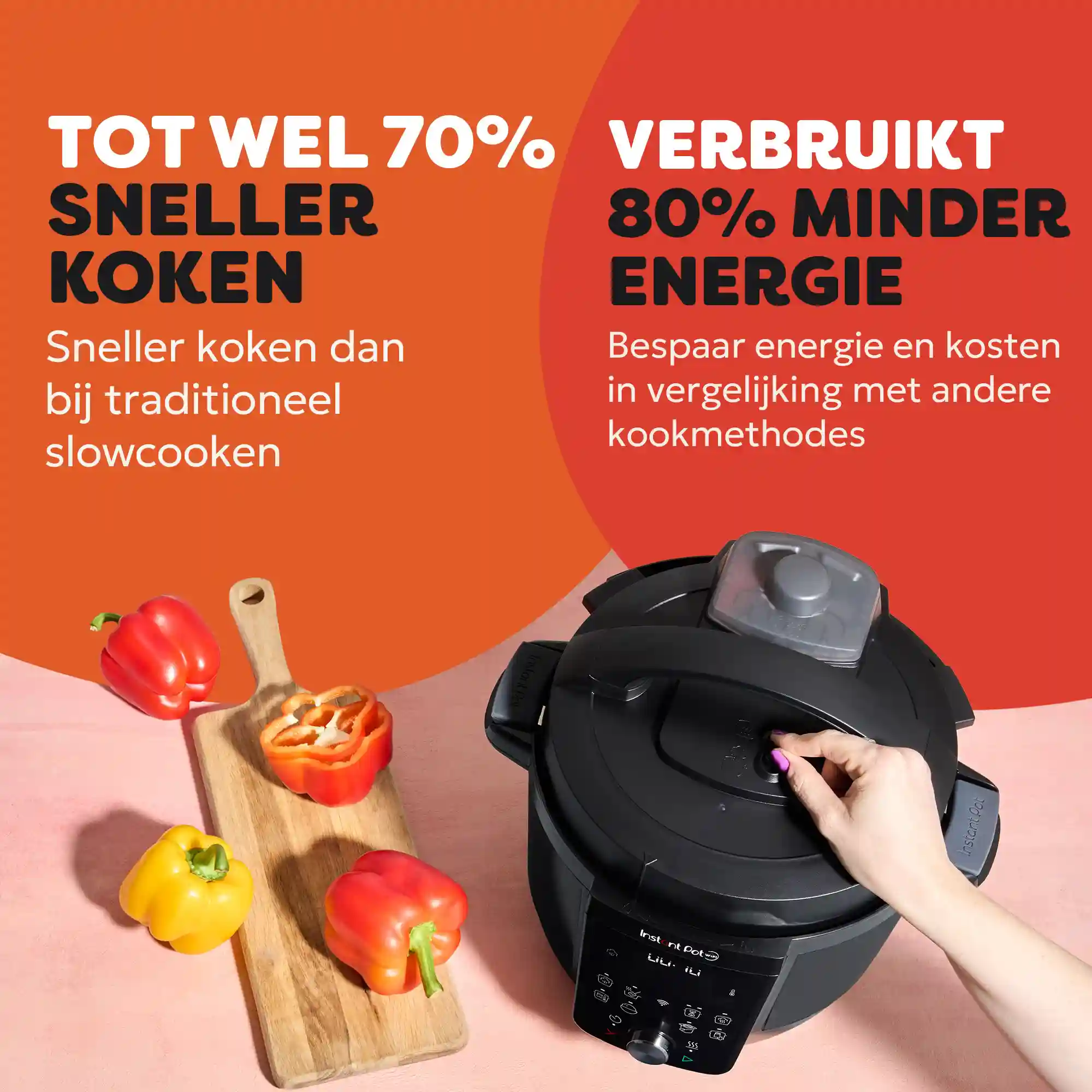 De Instant Pot Plus Multicooker van 5,7 liter stroomlijnt je kookproces door meerdere keukenapparaten in één te combineren. Dit bespaart ruimte en vergroot het gemak. Dankzij de veelzijdige functies bereid je gemakkelijk een breed scala aan gerechten, van slowcooking tot snelkookdiners. De aanpasbare programma's en gebruiksvriendelijke interface maken hem geschikt voor zowel beginners als ervaren koks.