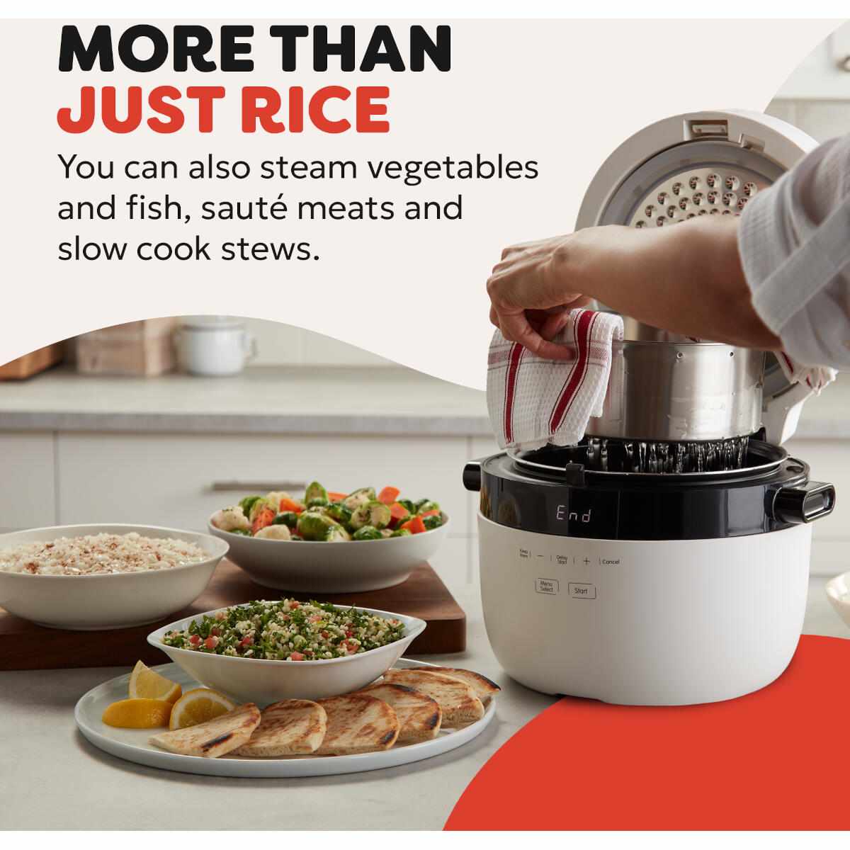 Maar het draait niet alleen om rijst – dit veelzijdige apparaat werkt ook als stoomkoker, slowcooker en sauteerpan. Of je nu groenten en vis wilt stomen, vlees wilt braden of stevige stoofschotels wilt slowcooken, deze pan is er voor iedereen. Je kunt je rijstgerechten zelfs uitbreiden met extra functies, zodat je gekookte rijst kunt omtoveren tot heerlijke gebakken rijst, allemaal in één pan.