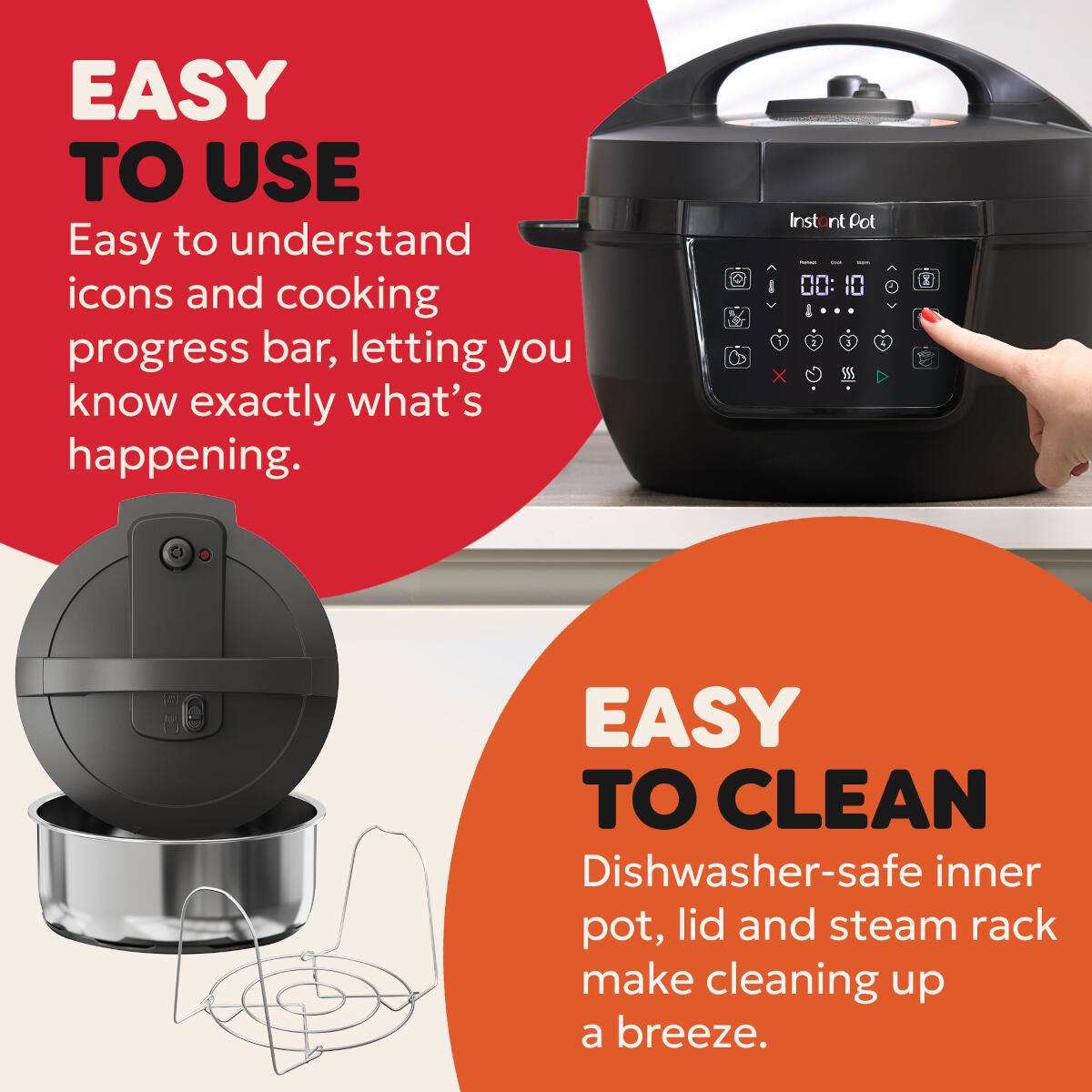 - Snel en handig: kies uit slimme programma's om moeiteloos je favoriete gerechten te bereiden, van soepen en stoofschotels tot cakes en bonen. Het brede kookoppervlak en de begeleidende kookindicator van de Instant Pot XL 7,1L Multicooker (Rio) zorgen voor een soepele kookervaring bij elke maaltijd.
